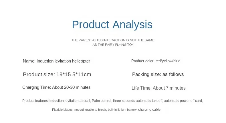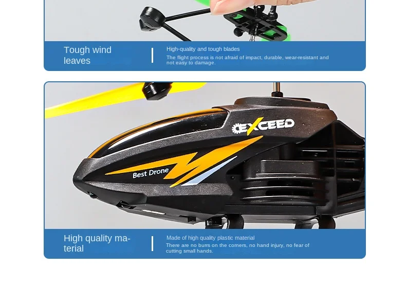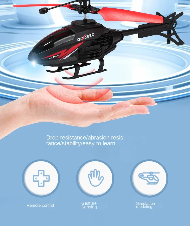 • Controle de gestos de 2 canais: Experimente a emoção do vôo com este helicóptero suspenso com controle de gestos de 2 canais.Seu sistema de controle intuitivo permite fácil operação e melhor experiência do usuário.
